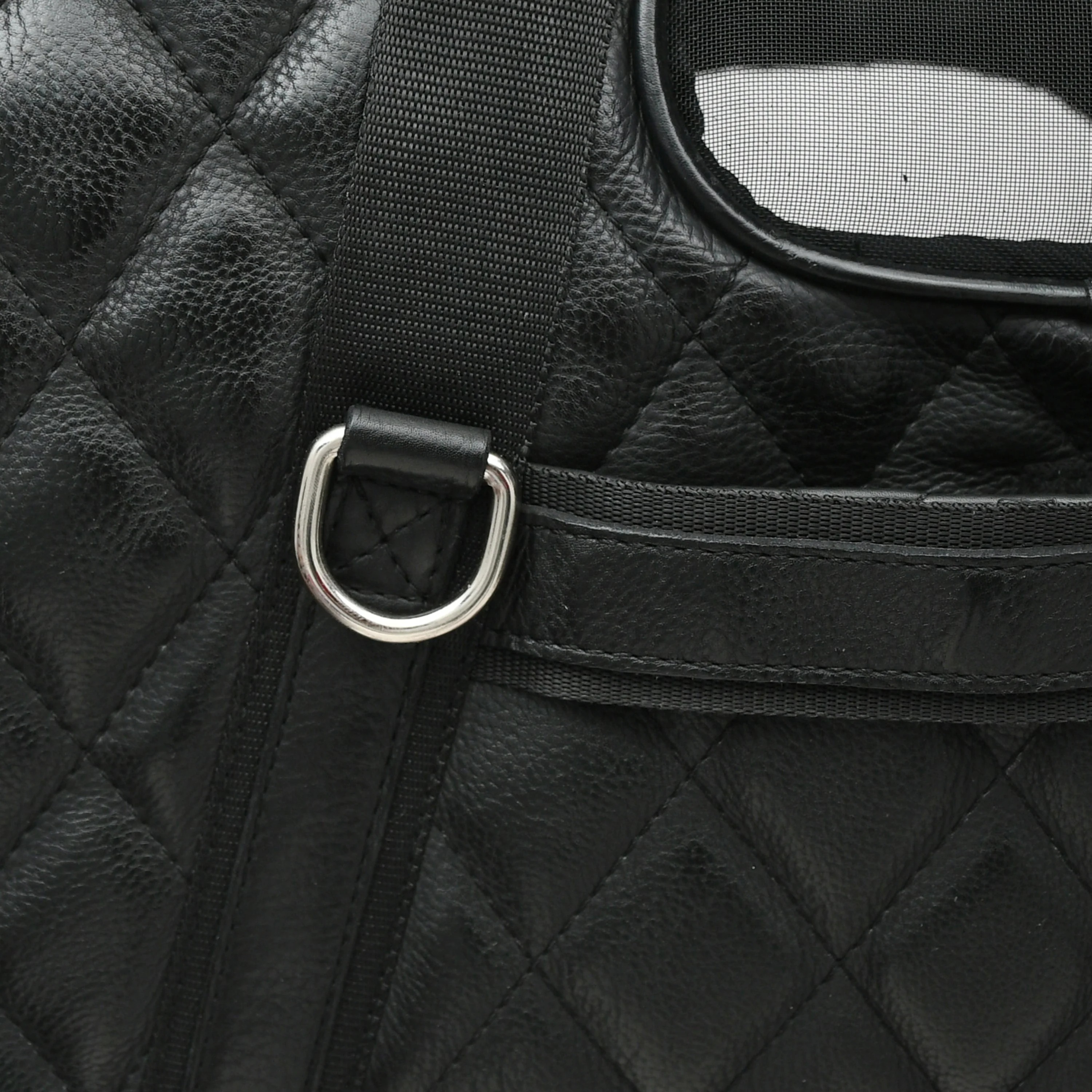 Treat your pet to our luxurious leather dog carrier, the epitome of luxury with optimum functionality thrown in. Made with care from drum-dyed black cow leather of 1.0-1.1mm thickness, this elegant pet accessory features a unique diamond-quilted exterior that turns heads and keeps your little friend cushioned.