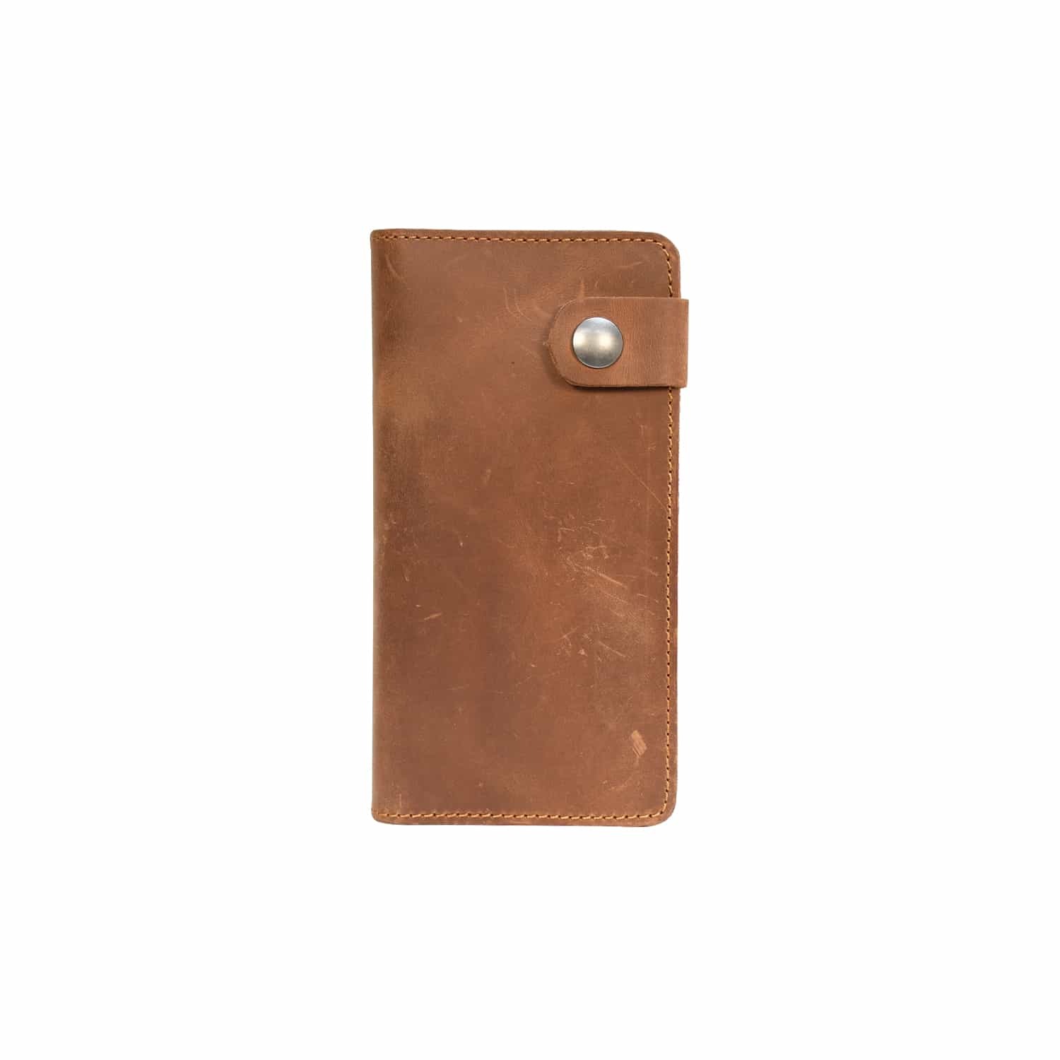 The Small Trucker Wallet is a handcrafted leather wallet made from highest-quality full-grain cowhide leather. This small leather wallet is finished in an earthy tan hue. The stainless steel snap buttons on this handmade wallet keep everything securely tucked in, meaning your valuables are not at risk of slipping out.
