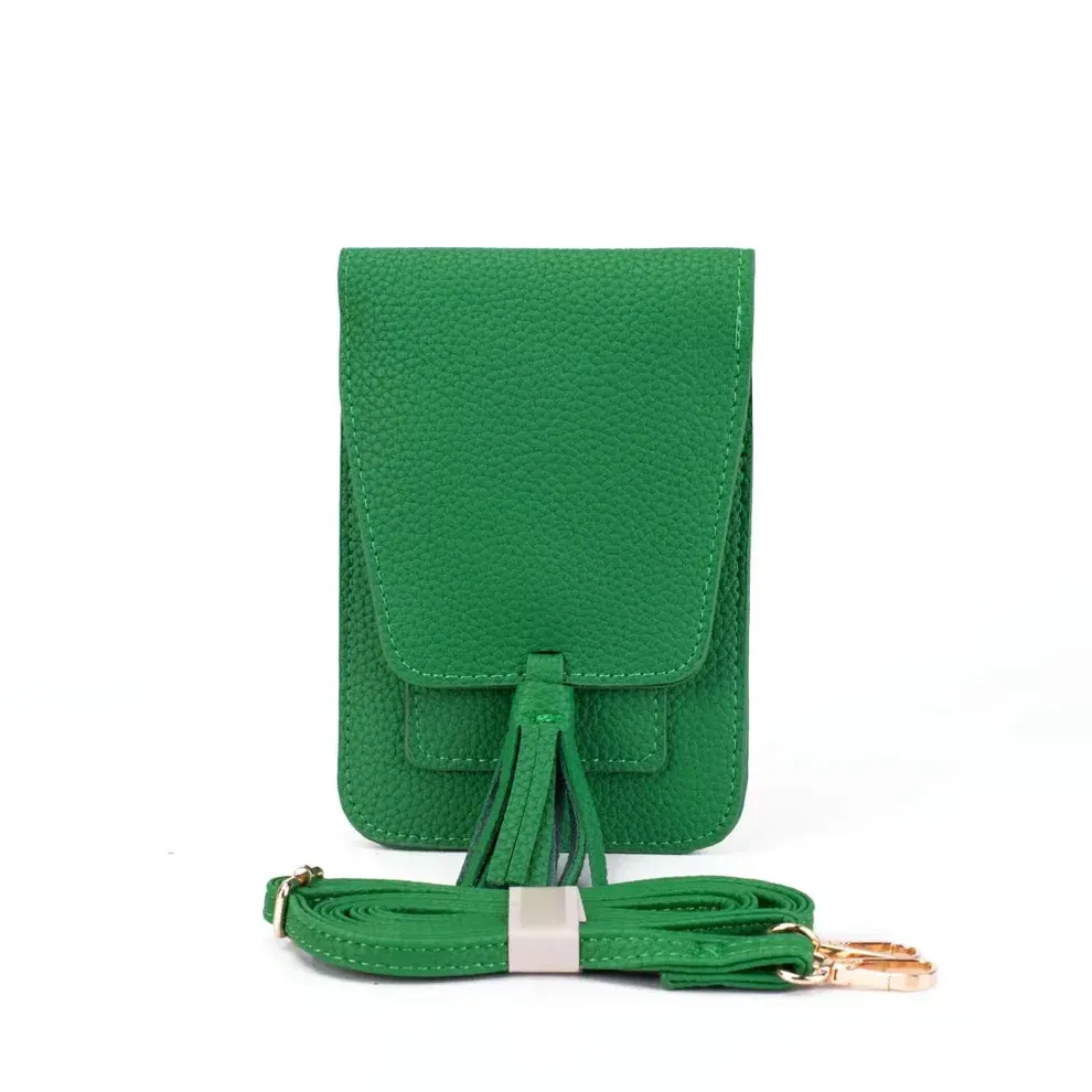 Compact and stylish Faux Leather Cell Phone Bag from Leather New York – perfect for carrying phones, cards, and essentials hands-free.
