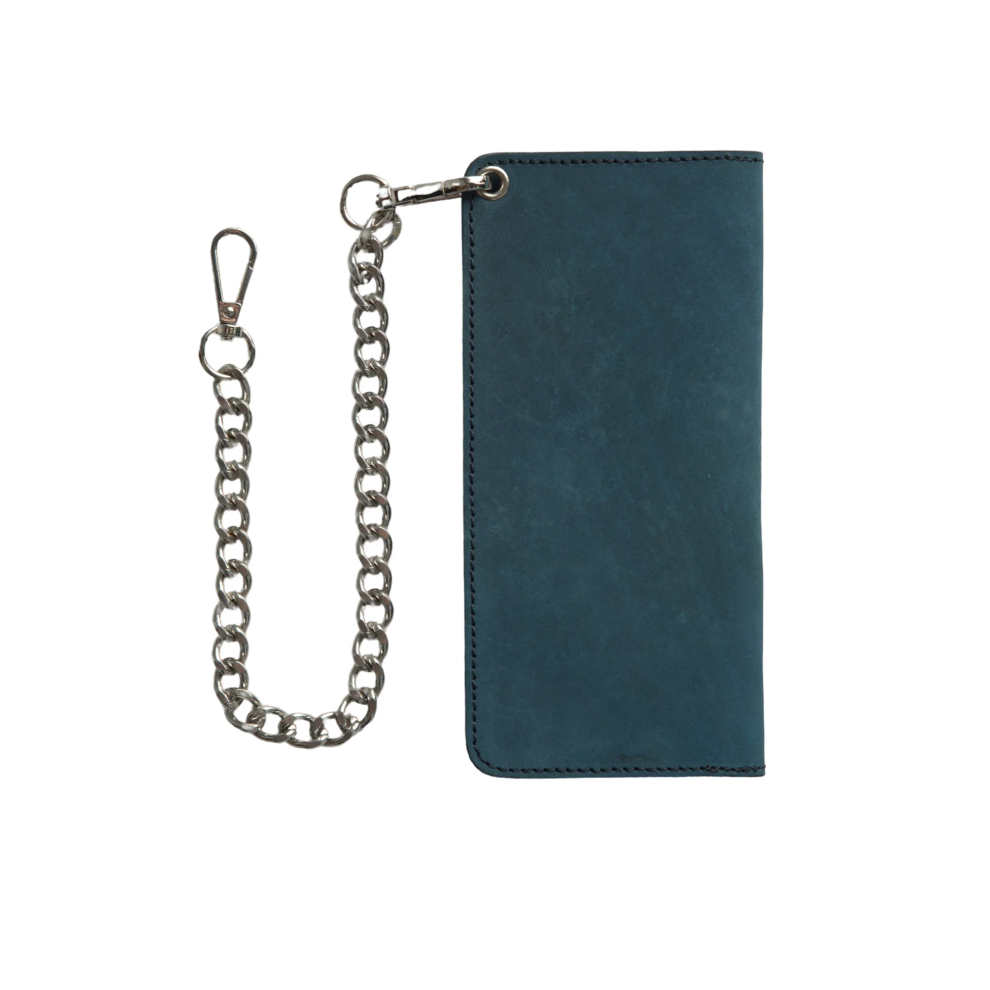 The Large Trucker wallet is the accessory of choice for the confident man who values practicality. Its complex blue hue sets it apart, and its size and proportions make a real impact when visible from the back pocket of your jeans or chinos. Designed to carry your daily necessities effortlessly, it has a single card slot, a zip pocket, and two large open pockets, all protected by a double snap closure for added security. The rust-resistant 15-inch chain adds an edgy touch, but is removable should you desire a slimmer silhouette or prefer to exchange it with your own. This leather wallet for gents is crafted as a byproduct from our belt division so it is a sustainable choice for the conscious consumer.