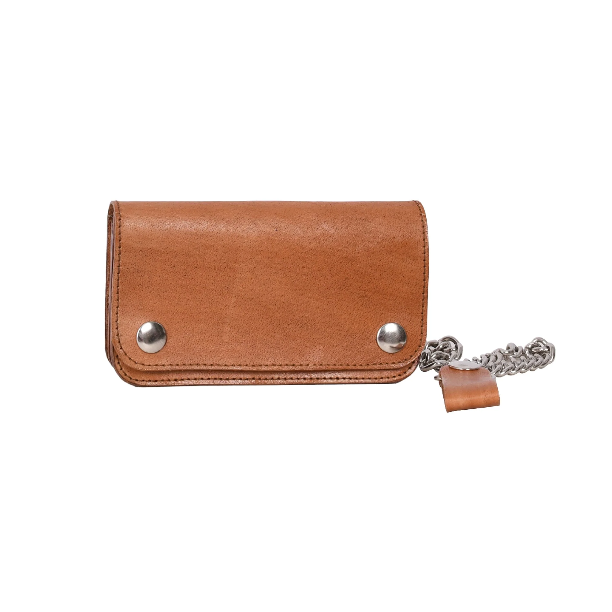 The Large Trucker handcrafted leather wallet is the accessory of choice for the confident man who values practicality. Its earthy tan tones evoke the desert, while its size and proportions make an impact when visible from the back pocket of your jeans or chinos. Designed to carry your daily necessities effortlessly, it has a single card slot, a zip pocket, and two large open pockets, all protected by a double snap closure for added security. The rust-resistant 15-inch chain adds an edgy touch, but is removable should you desire a slimmer silhouette or prefer to exchange it with your own. This leather wallet for gents is crafted as a byproduct from our belt division so it is a sustainable choice for the conscious consumer.