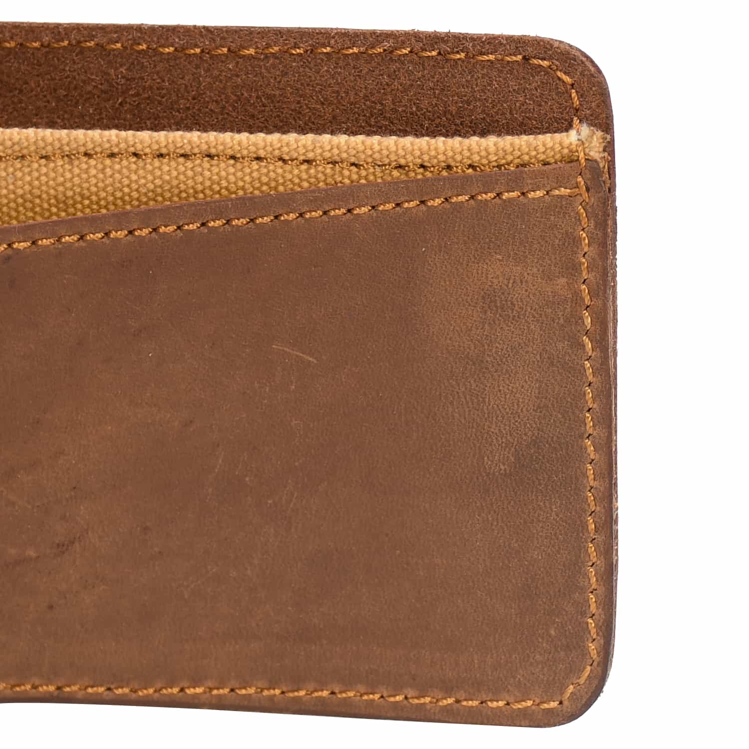 A classic design will always be in fashion. Four card slots and one large Dollar bill pocket will keep your most important items secure. The vegetable tanner leather is chrome free and is a by product of our belt division.